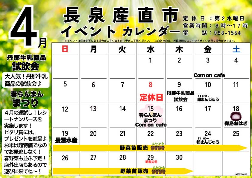 ファーマーズなんすん4店舗 4月イベントカレンダー