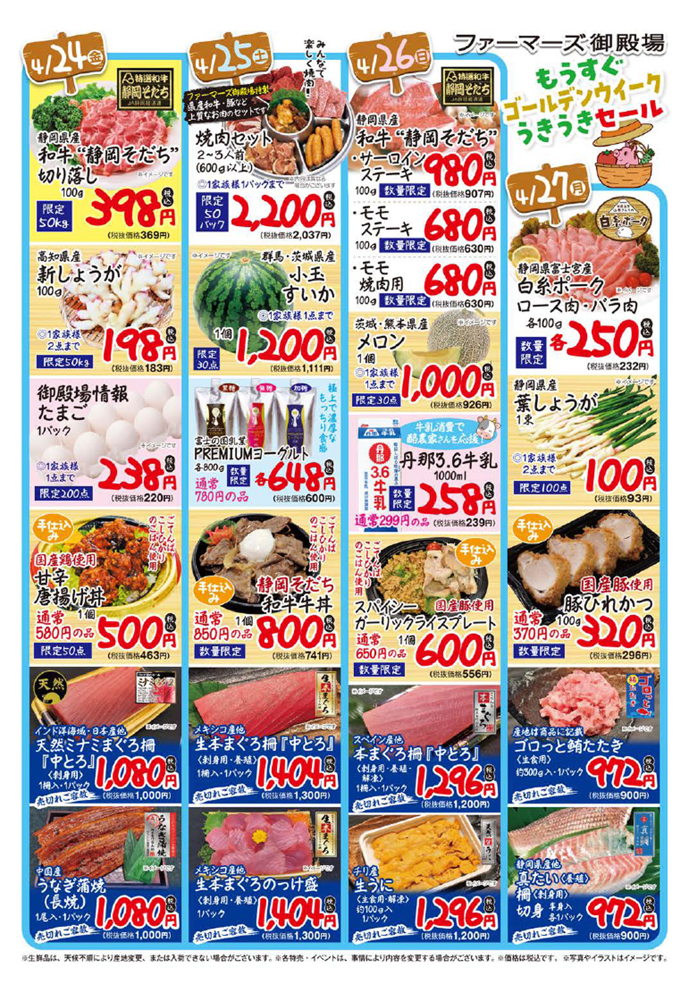 2026年04月23日 ファーマーズ御殿場 もうすぐGW(ゴールデンウィーク)うきうきセール(4/24~27)のお知らせ