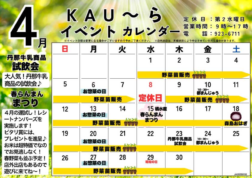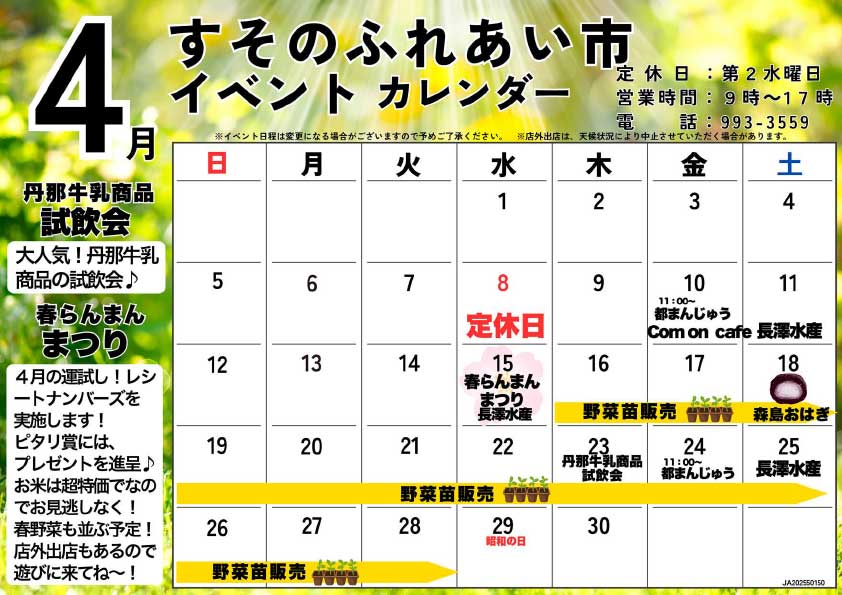 ファーマーズなんすん4店舗 4月イベントカレンダー